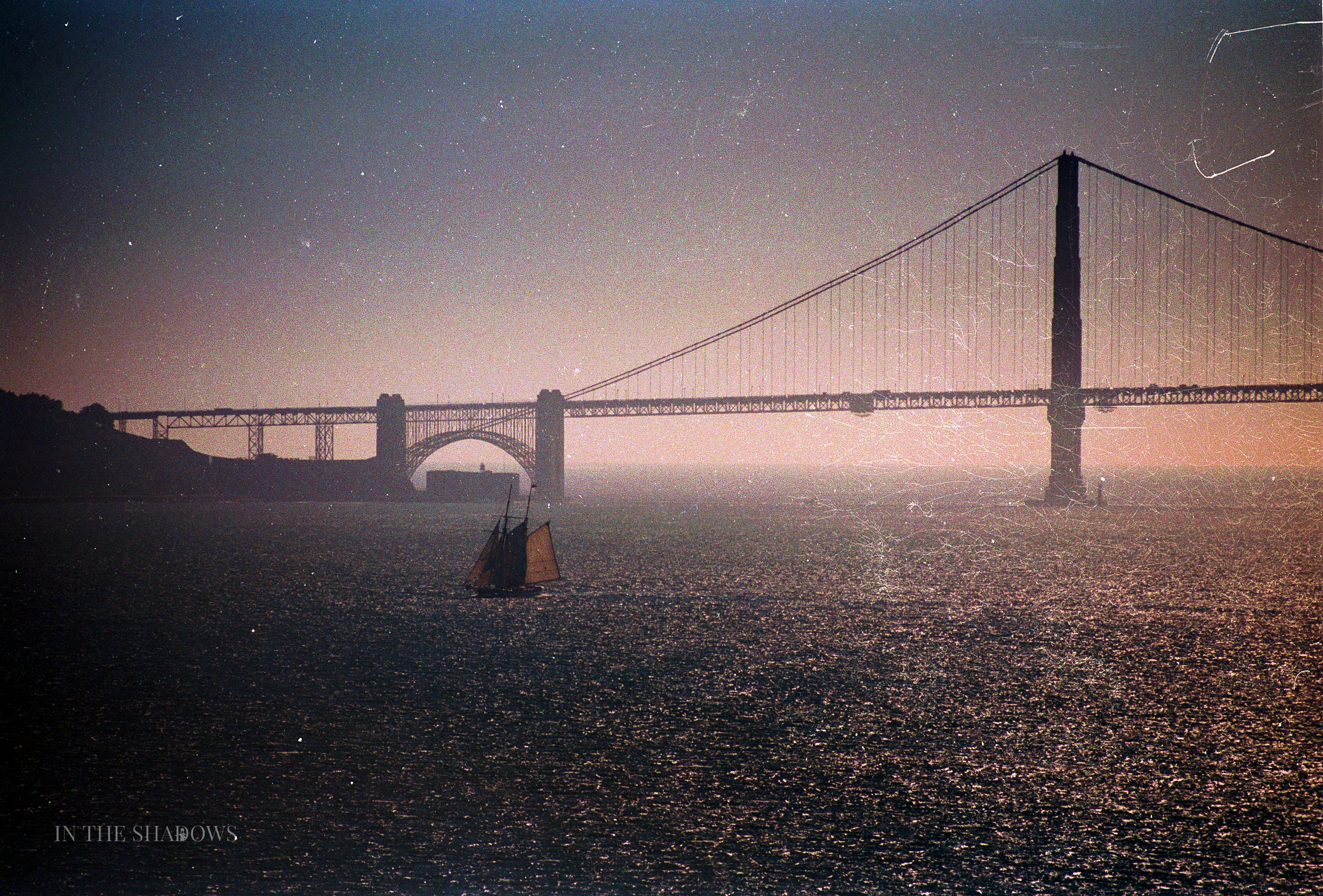 It's a very imperfect image and the negative took a battering over the last 40 years, but I think it adds to it. The colour, the vignetting, the scratches all give it a dream like feeling. The composition would have been perfect if the boat had been under the main span of the bridge, but hey.